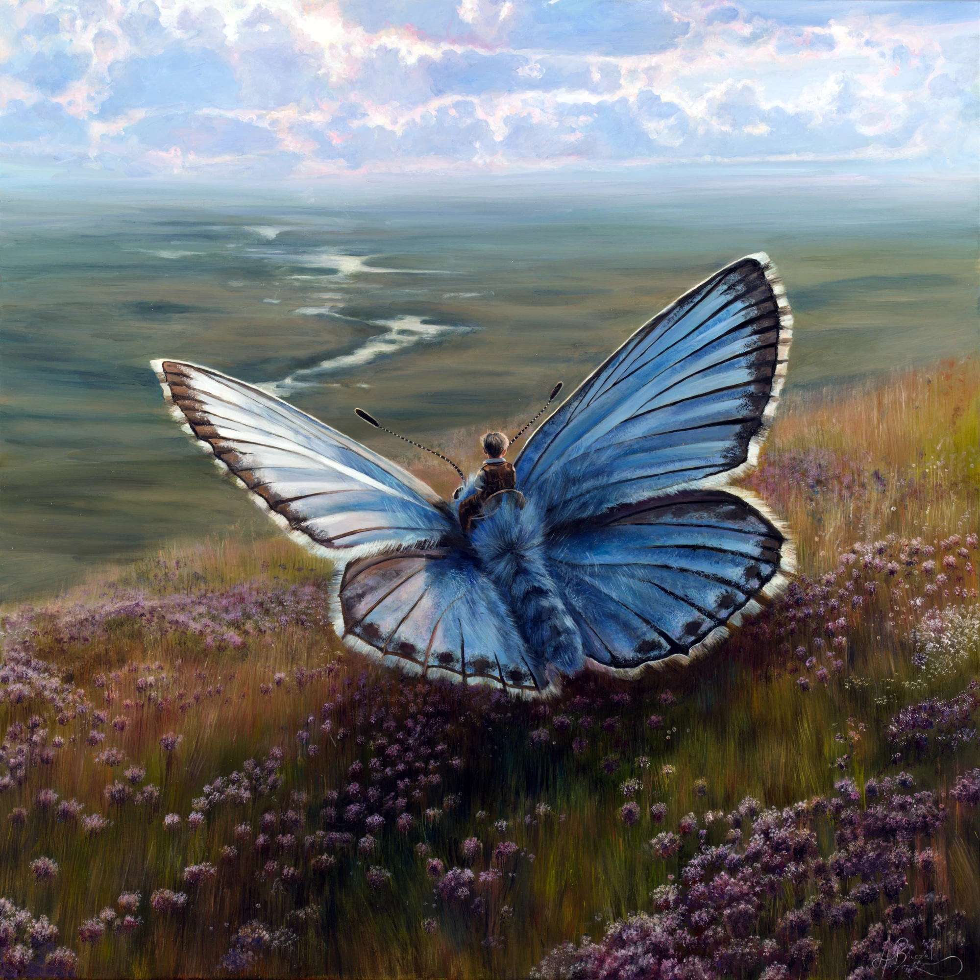 The butterfly, an age-old symbol of metamorphosis and freedom, becomes a metaphor for a path that does not require effort, but trust. The surrounding landscape — luminous, open, almost dreamlike — creates a space suspended between reality and imagination. It is a place where letting go becomes possible, where one can allow oneself the lightness of being.